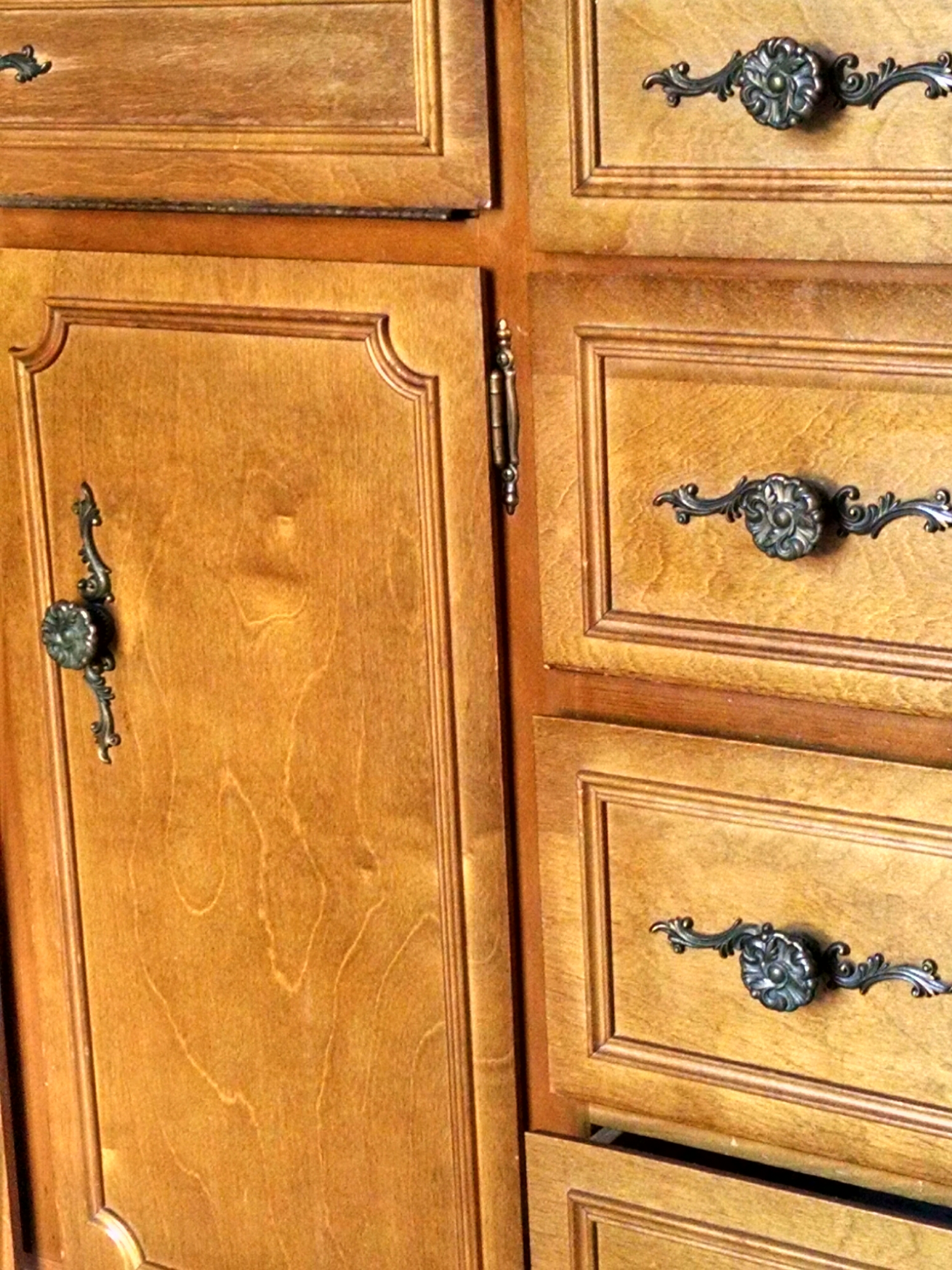 I am not quite sure I love the fact that something that was made at the same time I was a sophomore in High School is now considered “vintage”. But we can chalk it up to birds of a feather folk together. In any case I love the quality of the woodwork (no vinyl contact paper wood grain cabinets and 1/4″ chip board or worse) with real wood, dovetailed drawers, full piano hinges on doors and a frame that is built like a Sherman tank. (Pun)