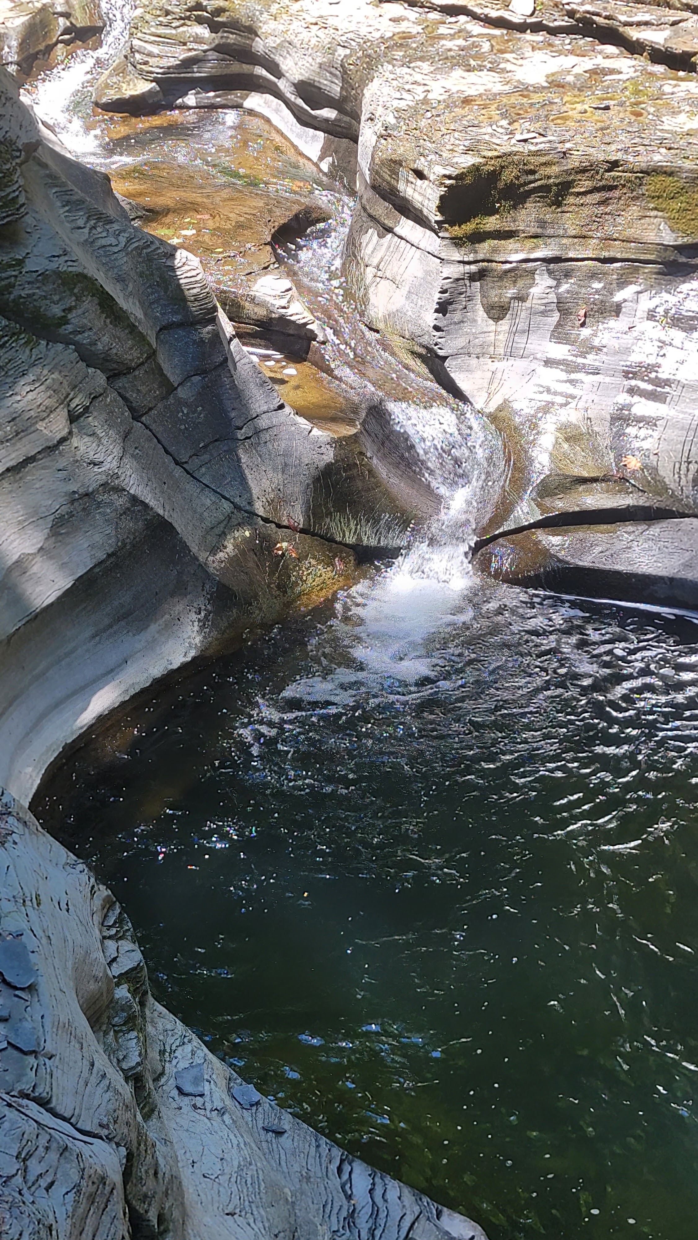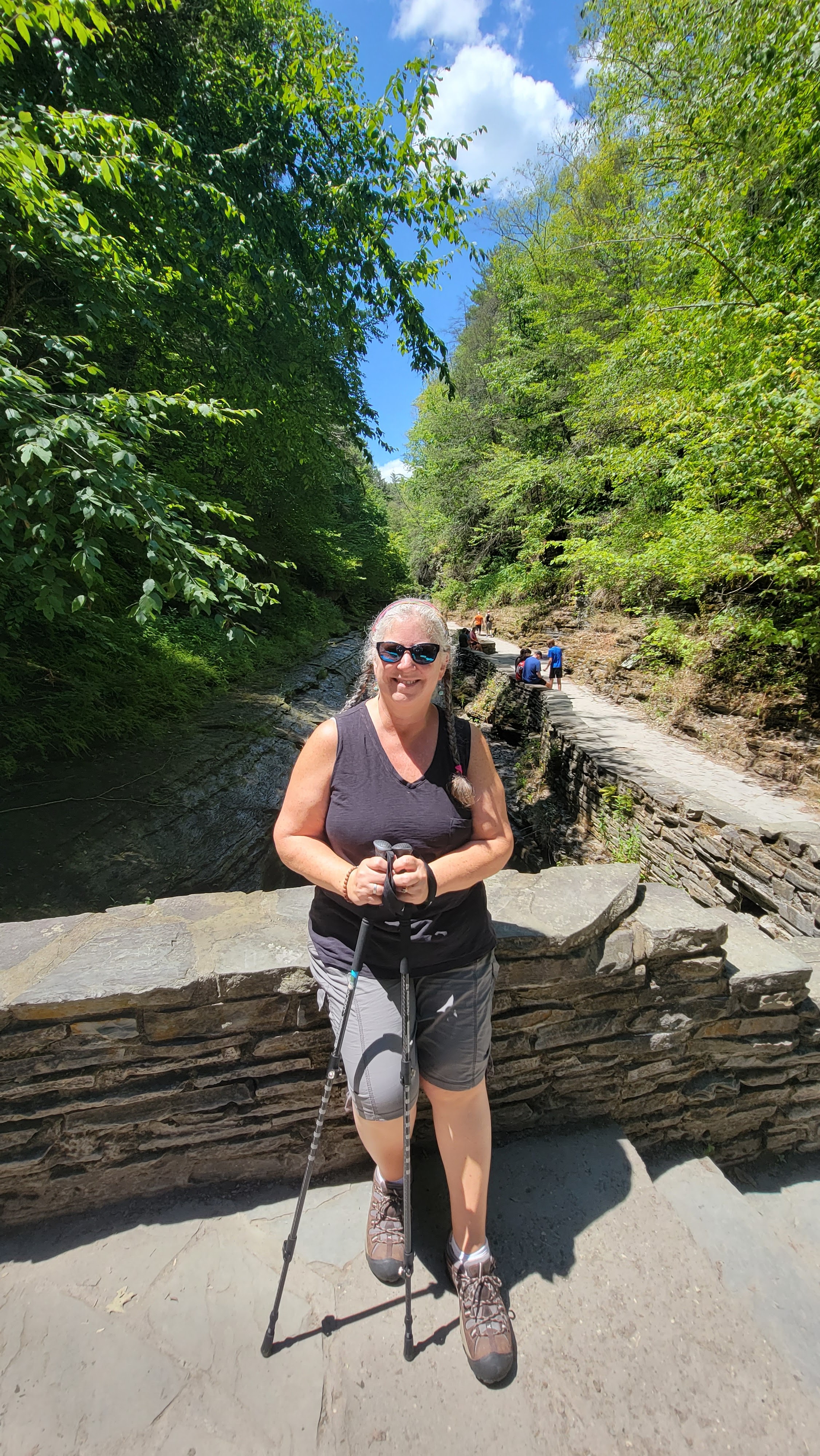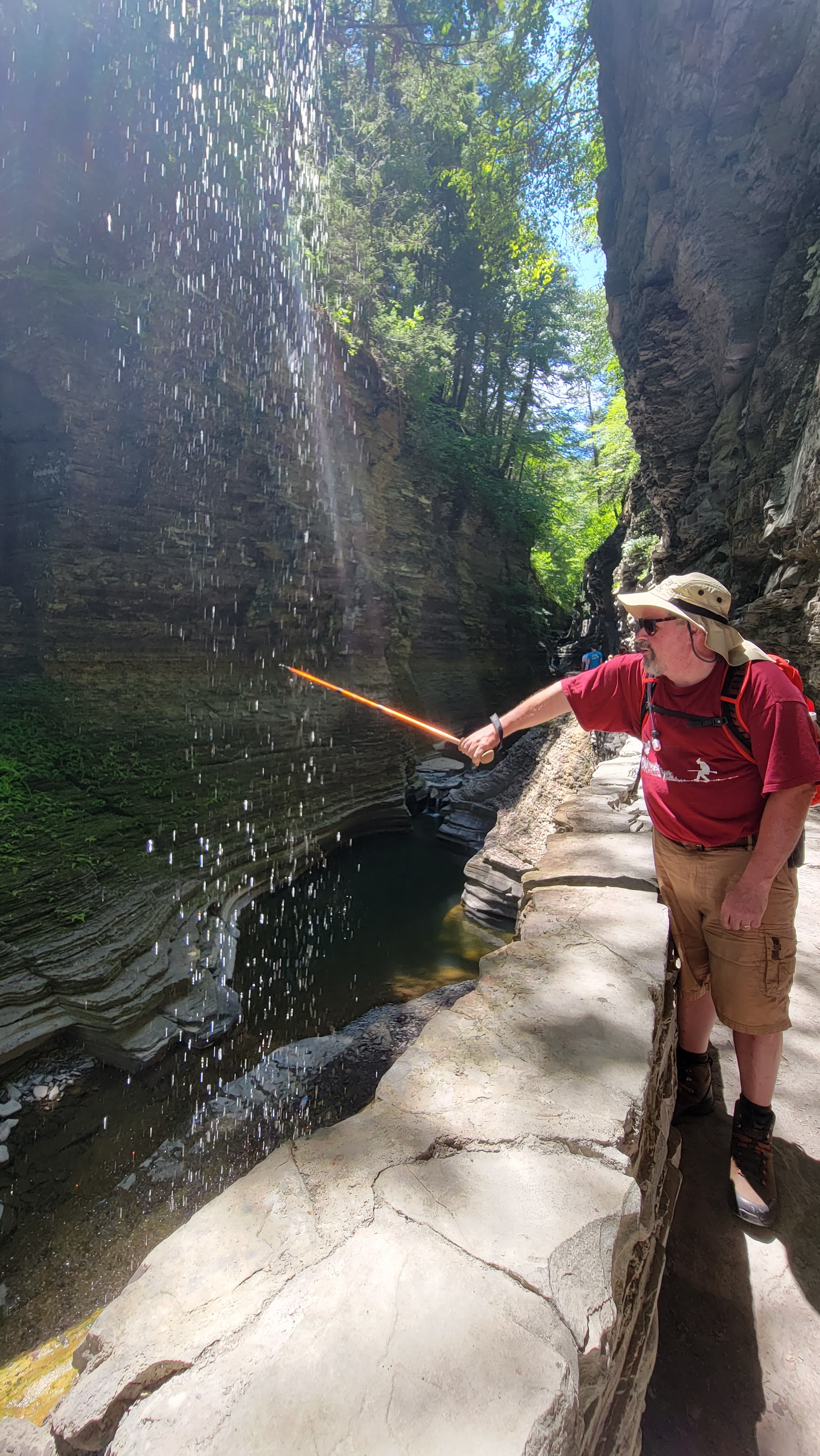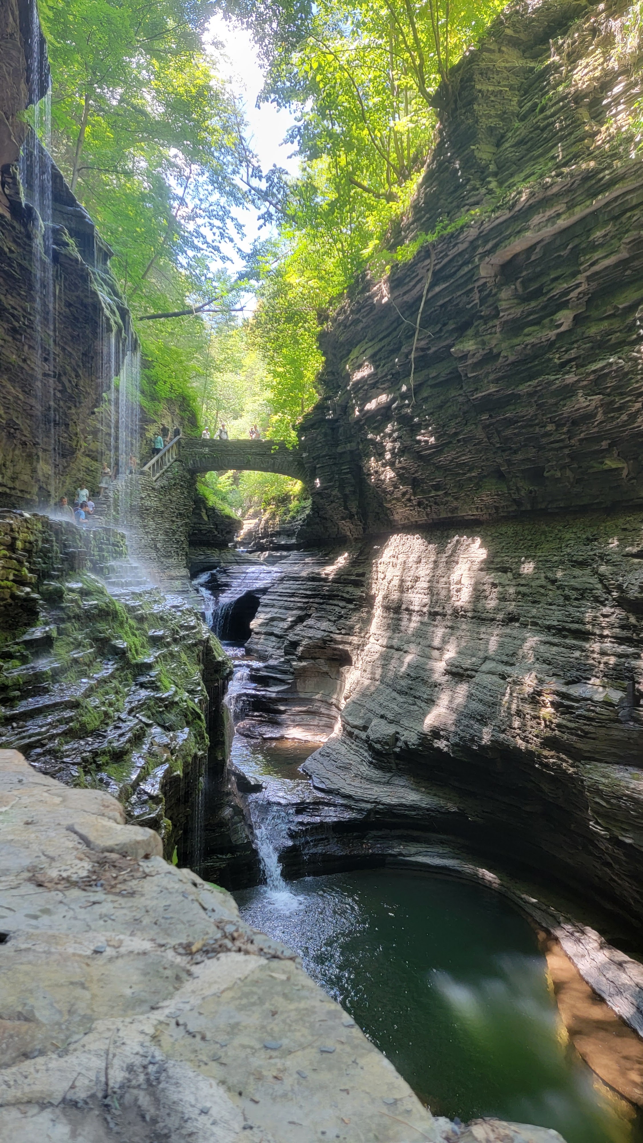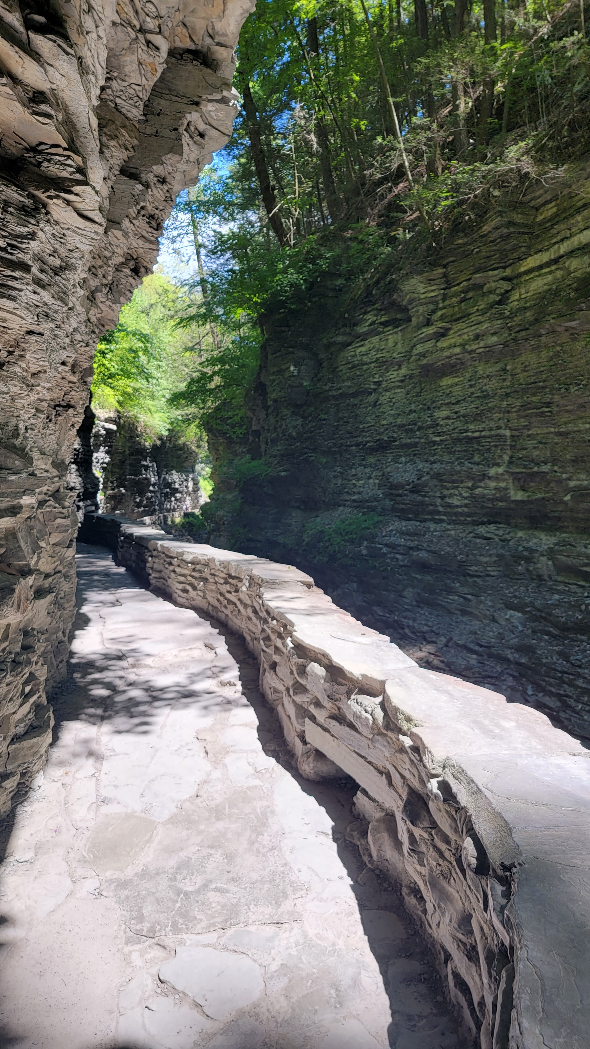 THE GORGE IS GORGEOUS! This is the reason you come right?? yes! This gorge and its waterfalls (some you can walk behind) is dubbed the “Grand Canyon of the East” and aptly so! It is beautiful from so many angles as you traverse the stone staircases, walk over stone bridges and navigate through some cut winding grottos with staircases (one forged in 1908!) We were here in mid-July and to be honest, the water levels were fairly low so some of the waterfalls were not as grand as they would have been in late spring. NOTE- sometimes the trail is closed if water levels are too high so double check their website for alerts. Nevertheless, being there on a sultry July day we enjoyed the cool misty atmosphere of the gorge itself. Temps dropped easily by 20 degrees and the mist from some areas was a welcomed surreal bath. I am sure the gorge in the fall is beautiful but note, much of it is rock so to see fall foliage you are going to need to be looking up more than around. Do only wear closed, sturdy shoes! The steps are stone, wet and uneven at times. We wore our hiking shoes and were just fine. There are several staircases that shoot off and up to the top edge of the eastern side of the gorge. We did not take any of these but we understand one leads to an old cemetery with grave markers of original settlers to the area and others lead to other more overarching overlooks of the gorge. These could be fantastic with fall foliage in full swing and give you views of the surrounding lake area of Seneca lake itself.