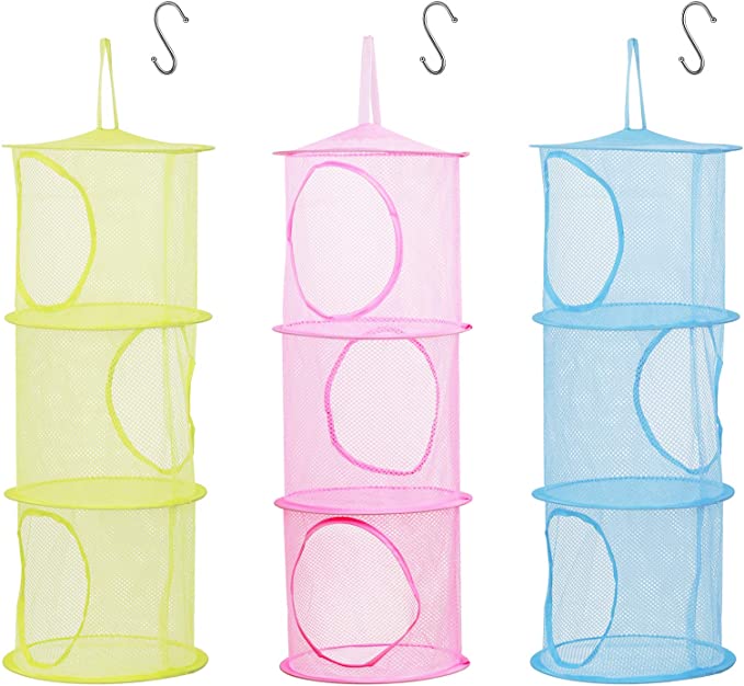 Recently, I happened upon a collapsible mesh toy storage hanging system at my local dollar store. It seemed the perfect thing to hang from our clothing rod in our shower to keep everyday toiletries, shampoos, etc. handy and in easy reach. After using it now on a 2 week trip–it has been great! Here is an amazon link to similar to what I purchased (for $3 at my dollar store!) Mine has all three openings on the same side so check out your own local dollar stores first!