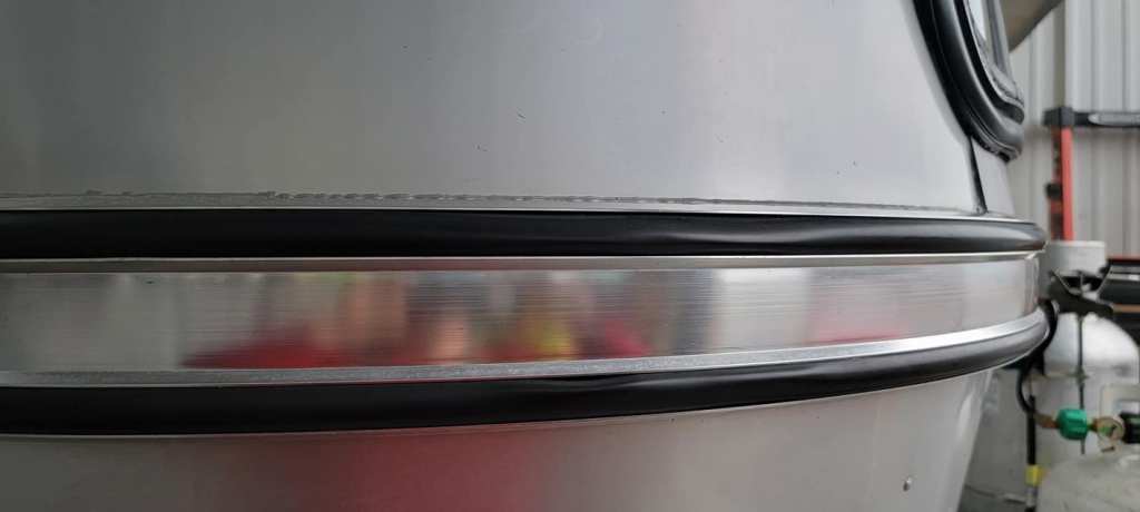 Here is an illustration we have made to show a side profile of what the rub rail insert should look like when installed properly. Notice it does have a “bulge” to it. This is correct—it is truly supposed to act as a “rub rail” and prevent things from bumping up and scratching the side of your Avion. Sadly, it does not really work that well- so be careful when driving near tree limbs/branches, or when carrying your ladder or equipment near the outside! Thankfully those of us with anodized exteriors have the benefit of a much harder surface so we don’t scratch from tree or bushes quite as easily as Airstreams do!