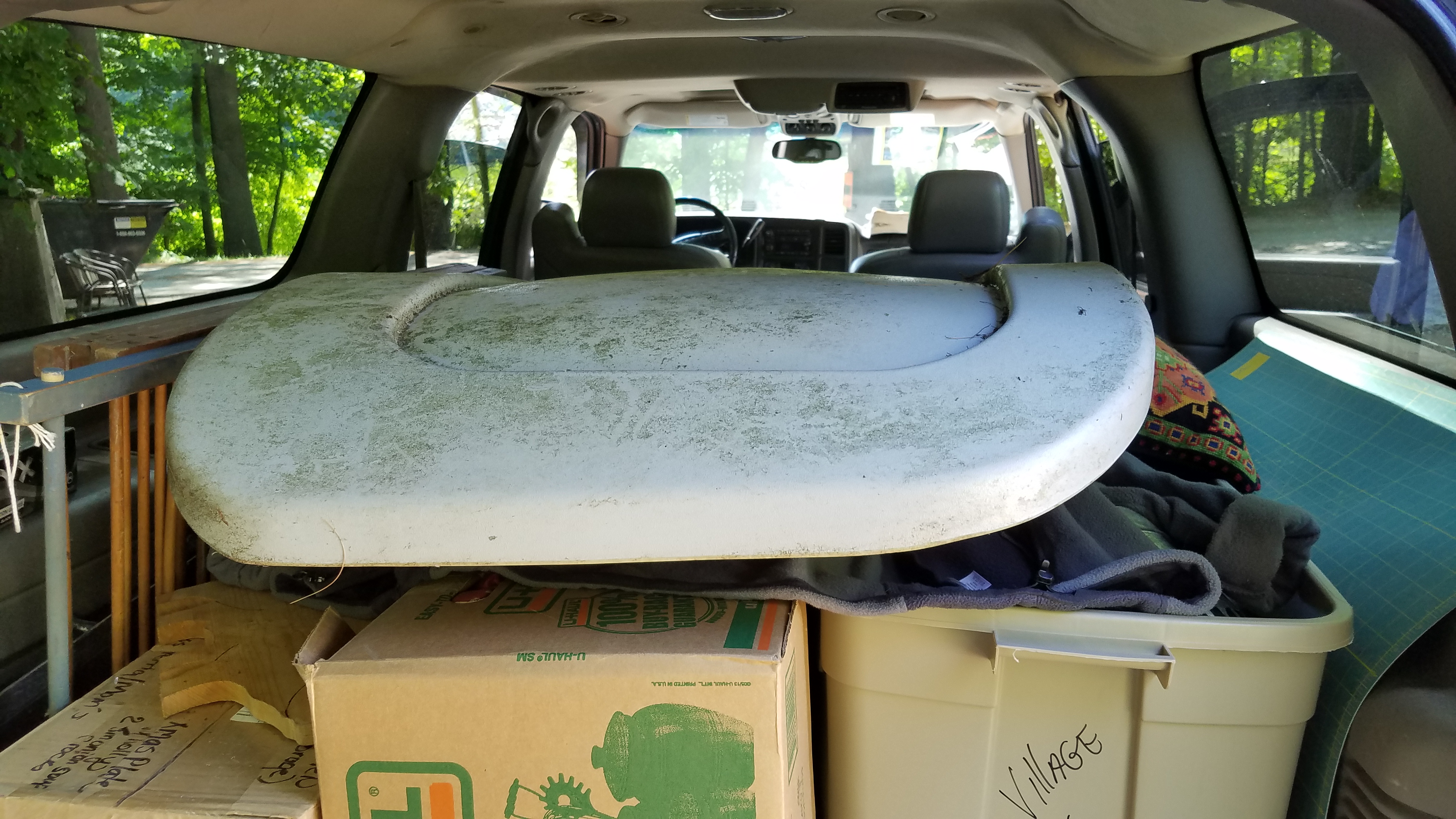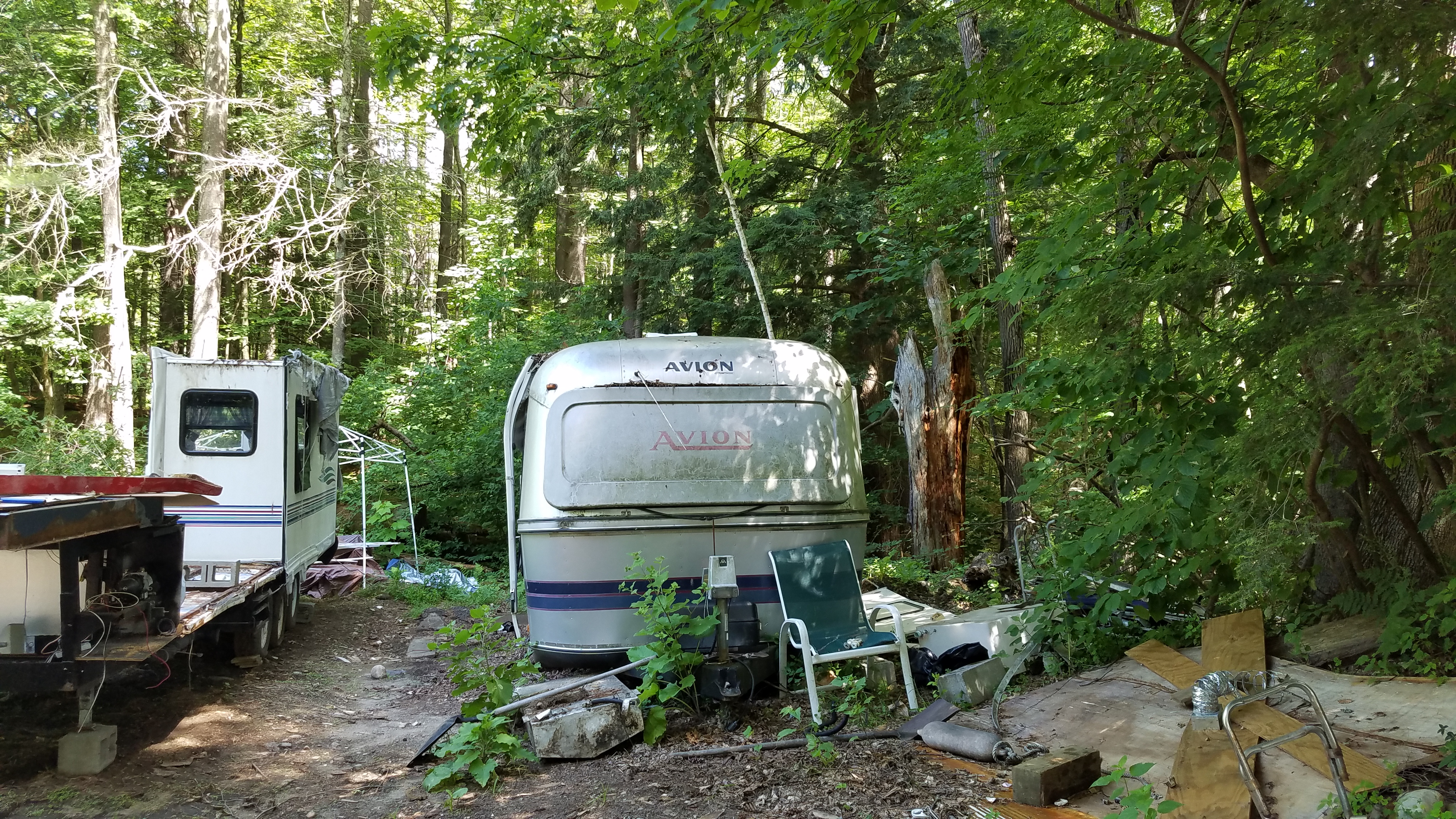 We were not dressed for the occasion but nevertheless we climbed over weeds, brambles, dealt with wasp nests under the rock guard, also rubble and junk. Using a few borrowed tools from the campground owner managed to score taking it off and home that day! We were ecstatic!! These things are so hard to find, and we got SUCH a deal!