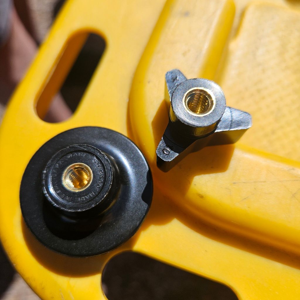 UPDATE! For the mount, we used Zipdee Awning part # 210060, which is their window part called (10A) ” Base Hinge Rectangular (floor mount), and riveted them to the trailer body. This was the same mount that was original to our rear window Zipdee Awning system where the roll out window arms were originally attached into. Once we hung our refurbished rear rock guard on the rear we realized these heavy duty mount hardware prices would serve perfectly as a way to hold down and clip the guard in place very securely. So we ordered another set (they come in a pair) from Zipdee and installed on the front rockguard, removing our old original spring plunger type clips. This new system (see video above) is WAY more secure and trustworthy!