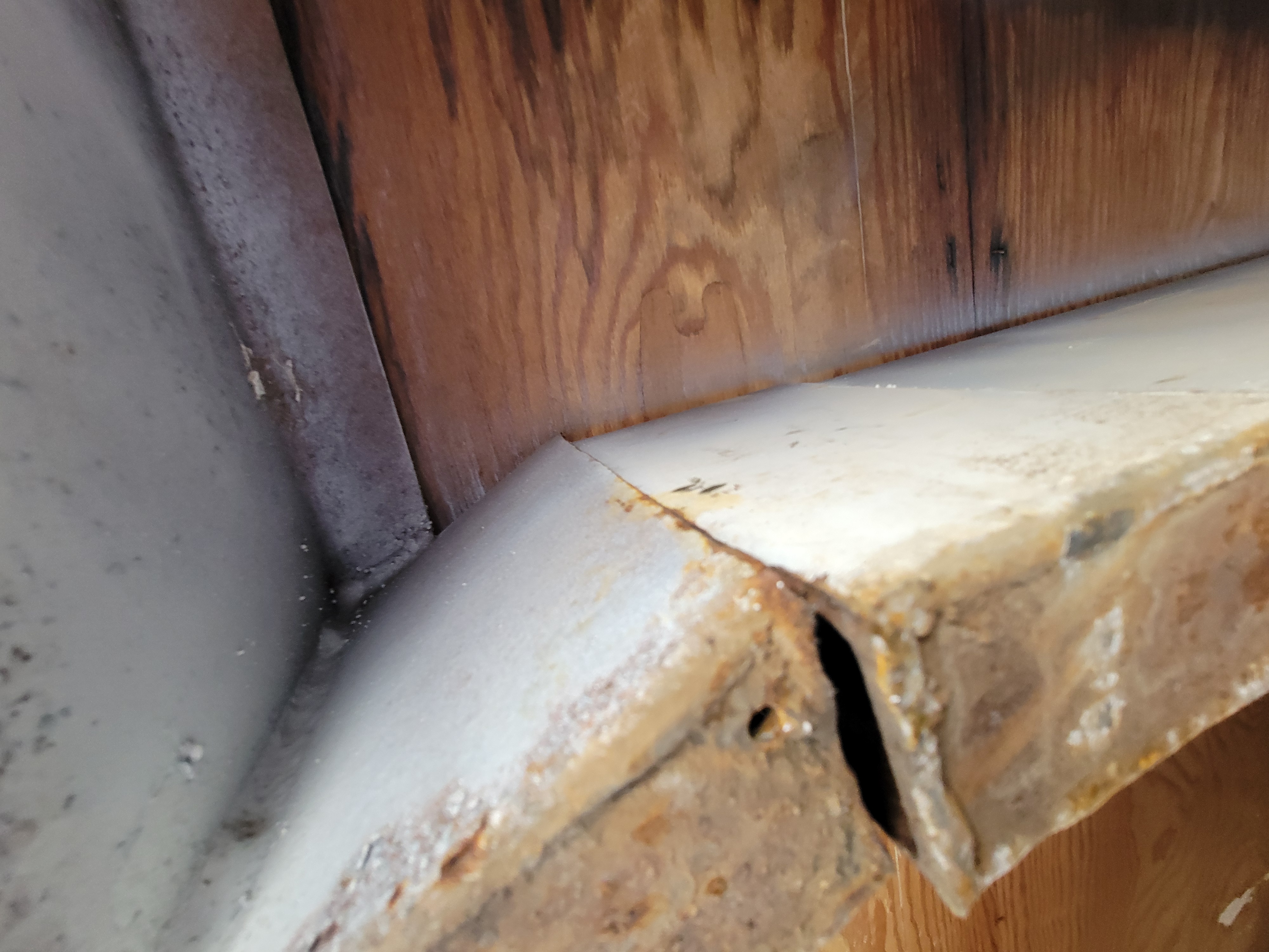 We had just been doing some routine cleaning of dust and dirt out of our two front most basement bays on the curb and street side. Kevin had previously cleaned and spray painted all the interiors of the bays with silver paint last year. He had seen no issues at that time.