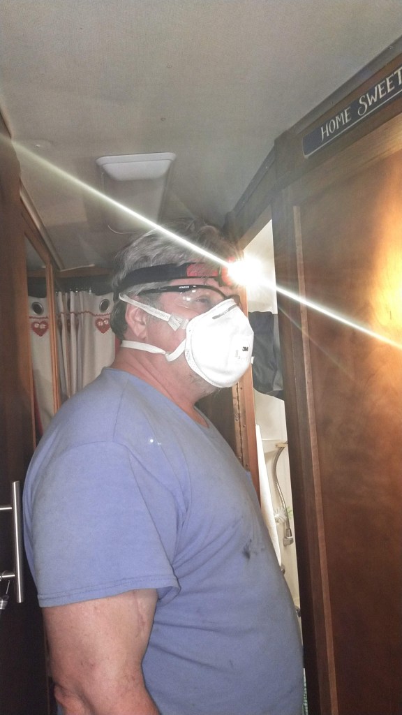 Messy job! Be sure you take your RV to a campsite with FHU or a dump station and wash, wash wash that baby out really good! This is what we did for this first primary step in this whole repair/replace project: