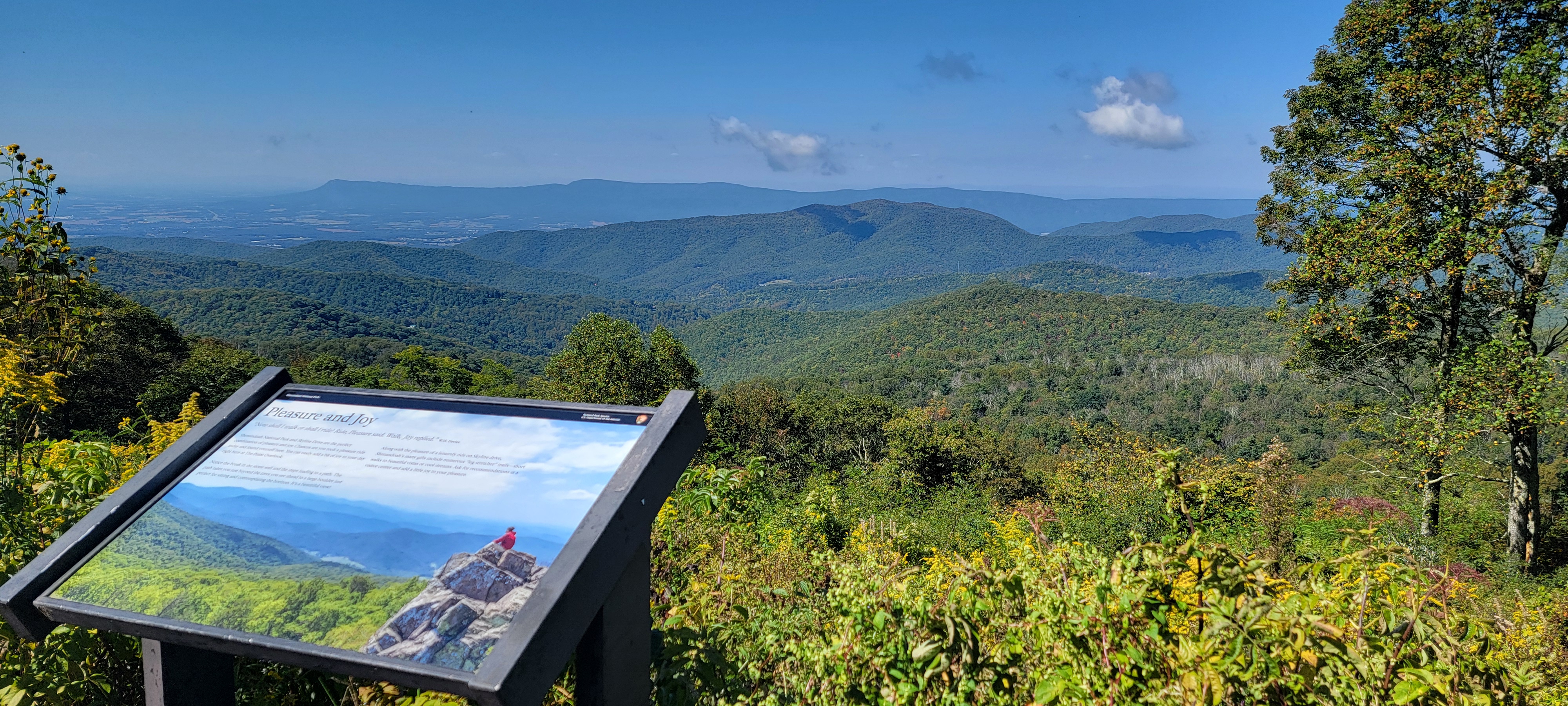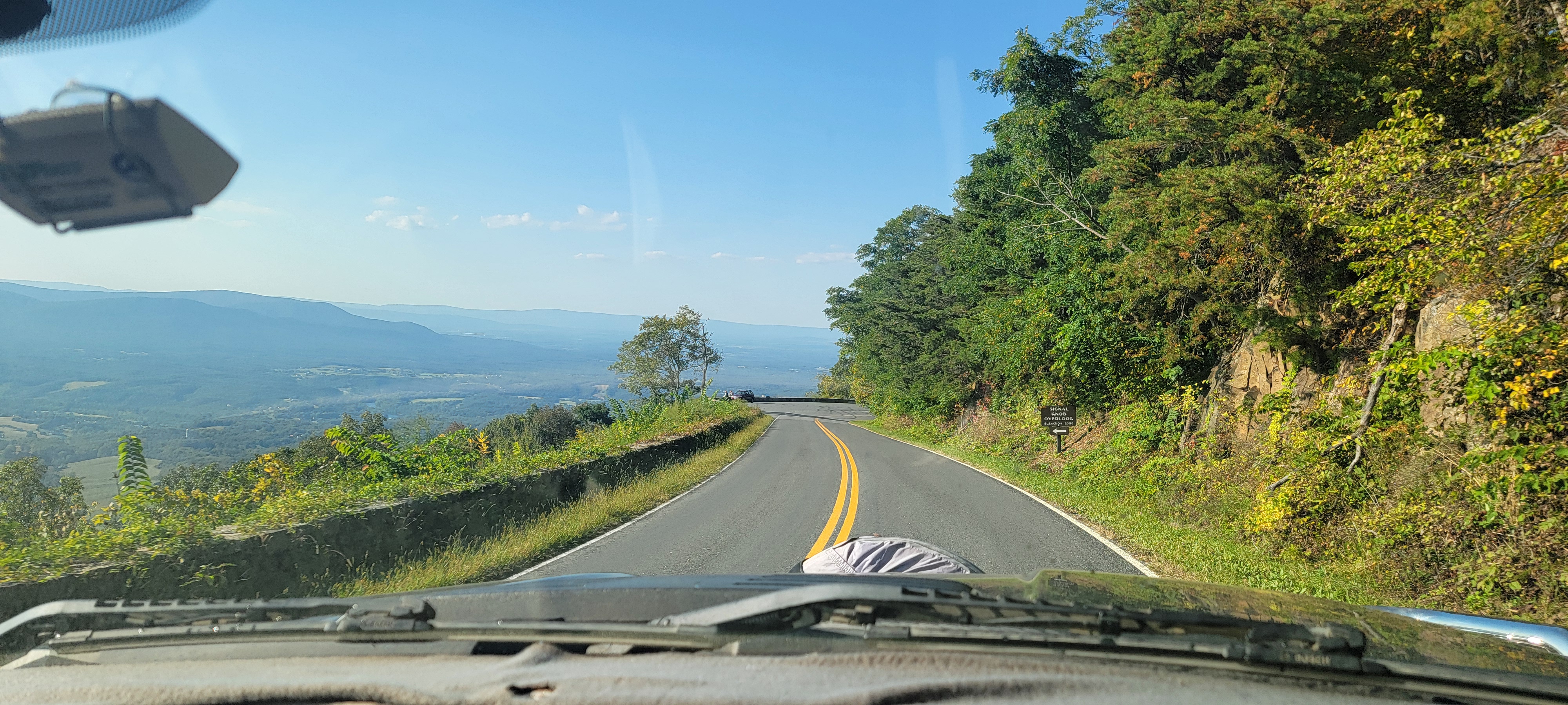 We traveled all the way to the north entrance, took our photo op and then turned around and headed back southbound on the Skyline Drive. NOTE: there is a FEE to drive the Skyline Drive, currently it is $30 (7 consecutive day access) but if you have the NPS Senior Lifetime All Access Pass, like we have, you get on for free! Check their website to see current fees and if any other NPS passes apply for free entry.