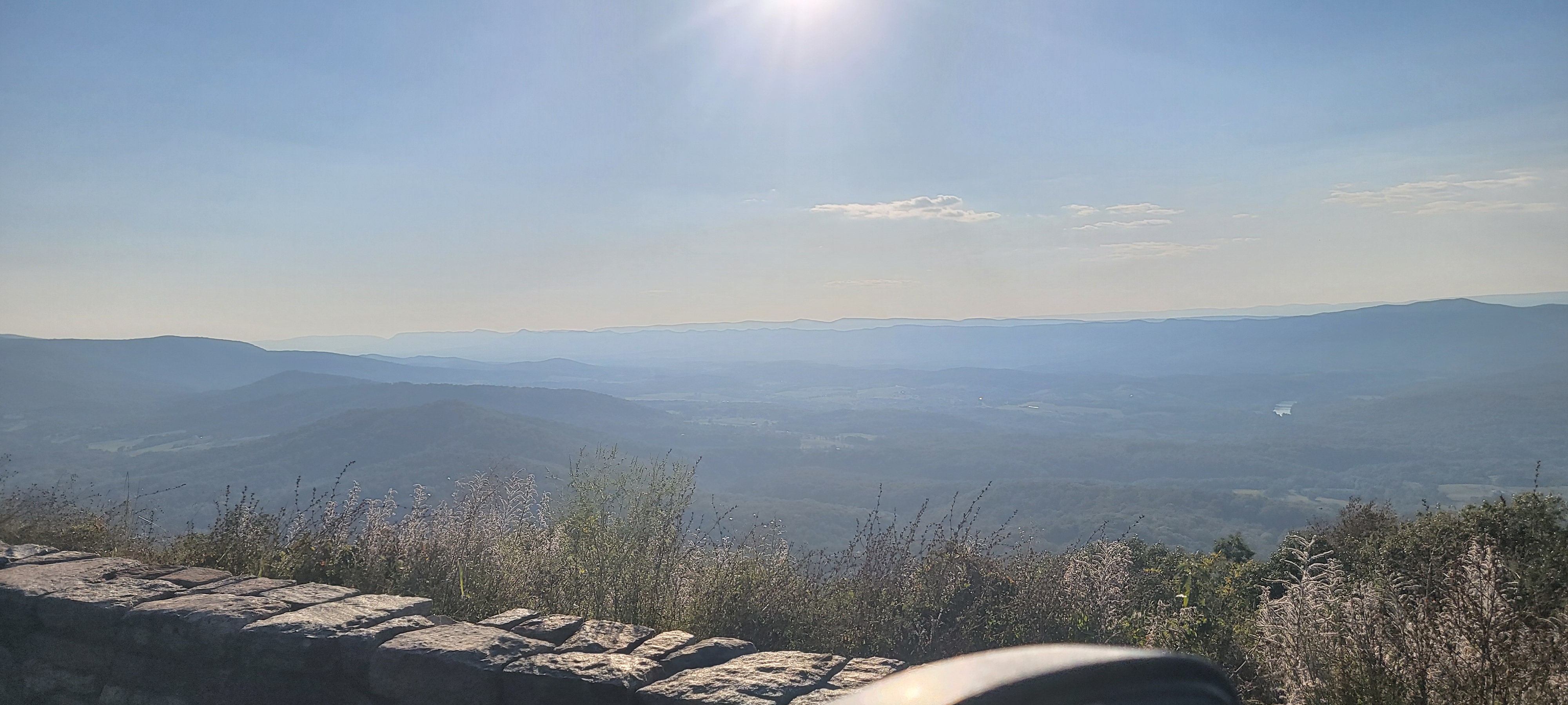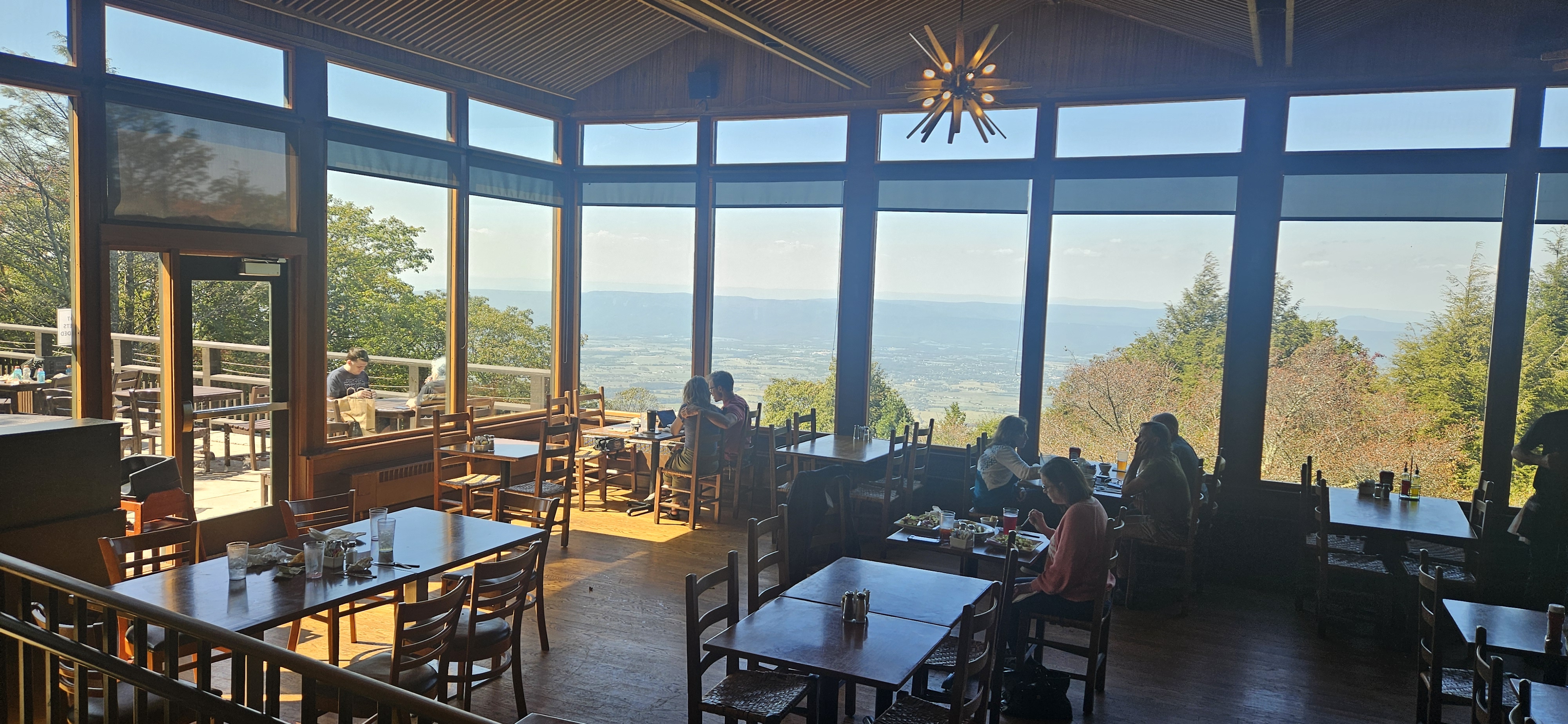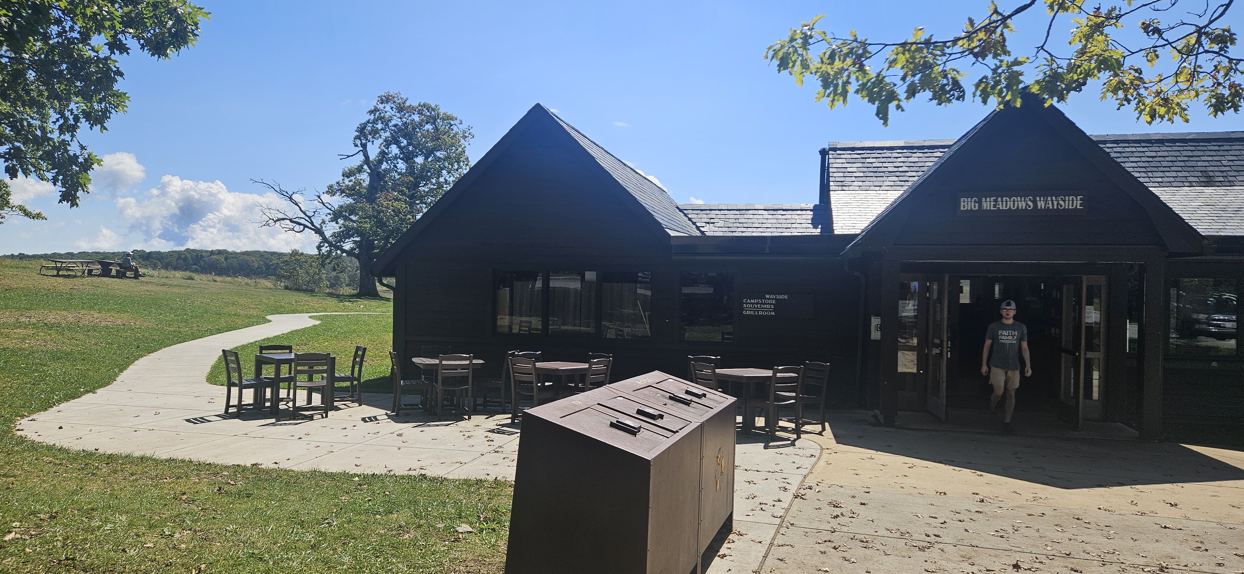 We went from the Swift Run Gap entrance north, had lunch at the cafe at Big Meadow Visitor Center & Rest area (nice small museum and NPS store there too–and THE ONLY GAS STATION ON THE DRIVE!)