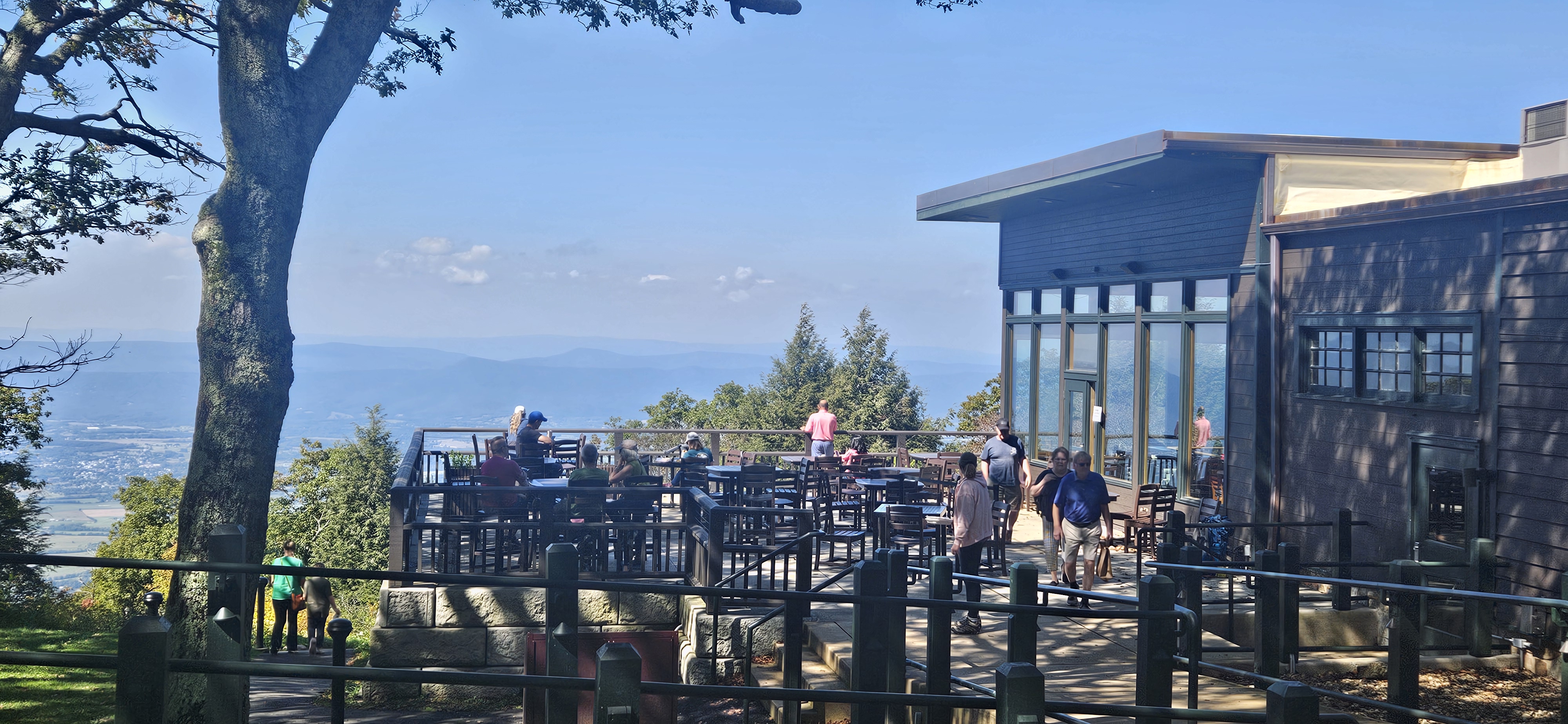 A nice visitor center to stop at is the historic SKYLANDS Lodge. We typically grab a coffee (Starbucks quickshop) and sit out on the open deck absorbing the views and sunshine. There is also a full service restaurant with floor to ceiling windows looking out into the Shenandoah We love the cement walkway coming from the parking lot which NPS has imprinted all sorts of animal tracks. Its a Must Do if you have children so they can guess the various animals! SKYLANDS also has lodging for those traveling just by car and want to stay and do any of the many, many hiking trails in the park.