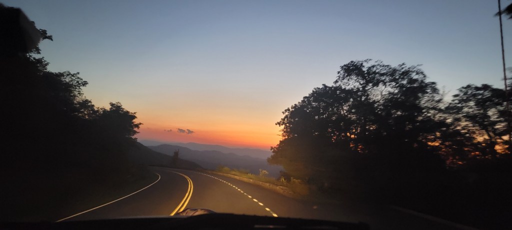 Check out the beautiful sunset that we timed perfectly for our return down the Skyline Drive! (note- there is a 12’8″ max height tunnel on this section of the Skyline Drive.