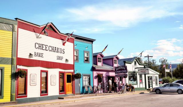 - Do stop into the Chamber of Commerce building in Dawson Creek (photo above) and pick up their gas station list brochure. Very helpful and always up to date for your travel time. They have nice souvenirs too. Park there in front of the ALCAN sign and do a photo op in their parking lot. Then walk one block into the center of downtown and visit the coffee shop and the authentic meat market and stock up on well priced, delicious meats for your trip if you are RVing it!