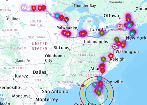 We began in TX, headed north to AR, MO, KS, NE, SD, ND, east to WI, IA, IL, IN, OH, north to NY, VT, CT, RI, south to NJ, PA, VA, SC, GA, FL.