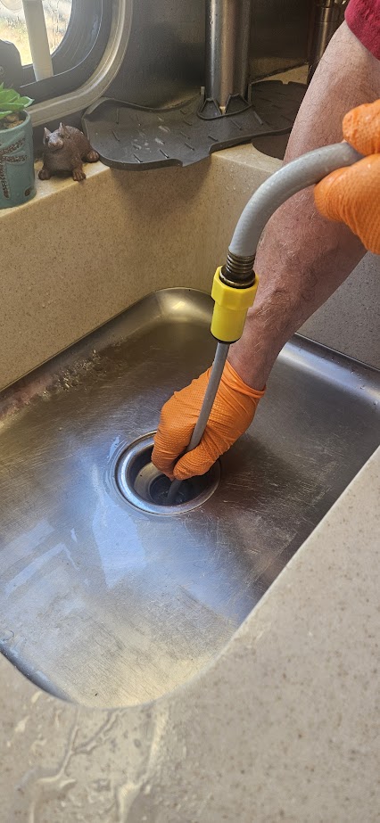 On our task list at least every spring (more frequently now that we full time) we do the “roto-rooter” type of pipe clean out on our travel trailer. Whether you only do a week a year, two weeks or two months or more- this is a necessary cleaning project you need to do.