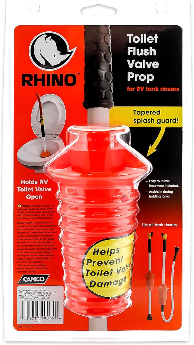 Camco Rhino Toilet Flush Valve Prop Watch Video as Kevin uses in our RV Toilet near the top of the pipe from bowl to black tank.